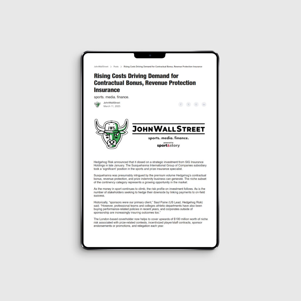 Hedgehog Risk recently sat down with JohnWallStreet to explore how rising sponsorship costs and performance-linked structures are driving increased demand for contractual bonus and revenue protection insurance.